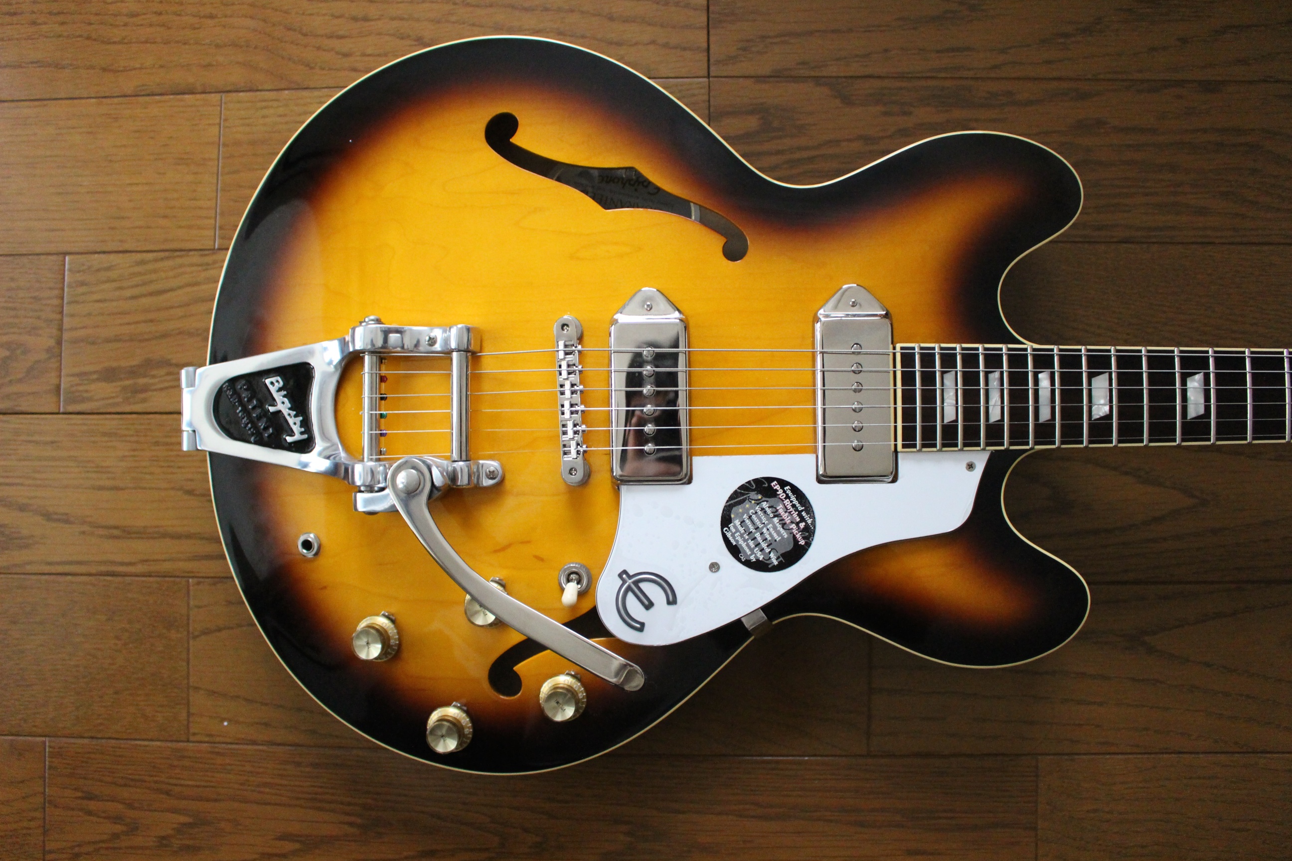 Epiphoneと言えば、韓国や中国で製造されているイメージが多い。実際に中国、韓国で製造されているCasinoもあり搭載されているピックアップは純正のギブソンではないし、木材も良い物ではない。