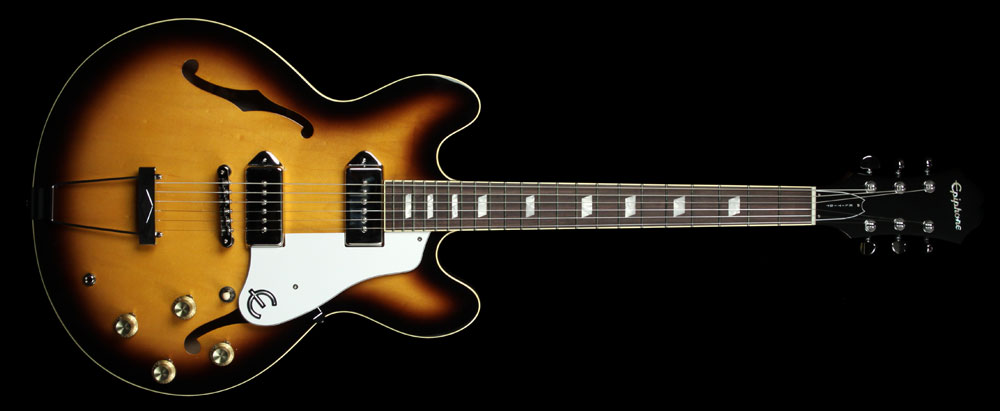 P-90が搭載されているのでクランチサウンドでロックンロール、ブルース、ジャズには適したフルアコである。ハウリングは抑えるように製造されているが、センターブロックがないのは、キツイものがあるためディストーションをフルにしたらハウリングは有り得る。Casinoで激しいサウンドで演奏するHR/HMやハードコア、デスメタル等は避けた方が良いと思えし、実際にCasinoでそれらのジャンルを演奏した人を見たことがない。シングルコイルが搭載されているフルアコなので、クリーントーンを使いながらのコード弾きや単音弾きも良いが、軽く歪ませながらクランチサウンドに適したロックを演奏する選択肢もあるのがフルアコの魅力である。例えば、アンプ直のみならゲインを10時までにしてトレブル、ミドル、ベースのつまみはバランスが取れたセッティングが望ましいだろう。オーバードライブ、ディストーションを通してサウンドメイクをするのであれば、TS系のオーバードライブの場合は出来るだけトーンを3時~フルに近い状態にしてからレベルとゲインの調整をすることが良いと思える。もし、トーンを高くするのが嫌いなのであればアンプのトレブルを高くし、ミドルを12時より右にするのは避けて調整をする方が良いだろう。それ以外の歪み系エフェクターを使用するならトーンや歪みとのバランスなどと相談しながらサウンドメイクをし、自分に適したロックやブルースなどのフレーズをプレイすることがCasinoで作るクランチサウンドの魅力である。更に、製造されている数は少ないがミニ・ハムバッカーが搭載されたモデルもあるので、もう少し歪みや太い音が欲しいのであればミニハム型のCasinoが良いだろう。